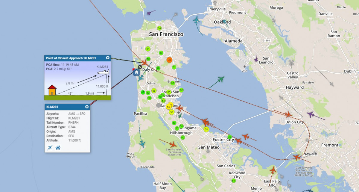 Our Flights and Aircraft Noise Tracker gives you a near real-time look at actual flight tracks and noise levels around the Airport. You can investigate aircraft-related noise events, validate your aircraft noise calculations, and submit community concerns directly to the SFO Aircraft Noise Abatement Office.